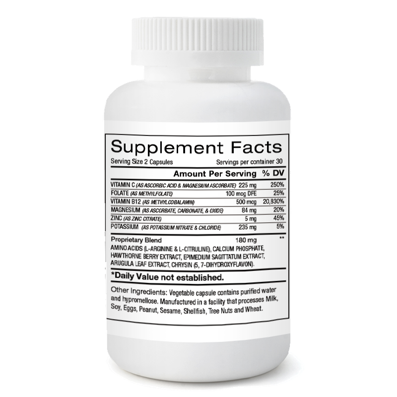 With so many choices on the market for nitric oxide supplements, how do you know which is most effective? Most manufacturers choose to use arginine, beetroot, and spinach despite existing research that shows that arginine is not efficient or effective for people over 40. Even more recently, research shows that beets and spinach are HIGH in oxalates which encourage kidney stones. Instead, we chose the highest N-O-containing food as well as the lowest oxalate contributor: arugula. We also utilized L-5-MTHF (methyltetrahydrofolate) for those genetically having trouble converting dietary nitrate.